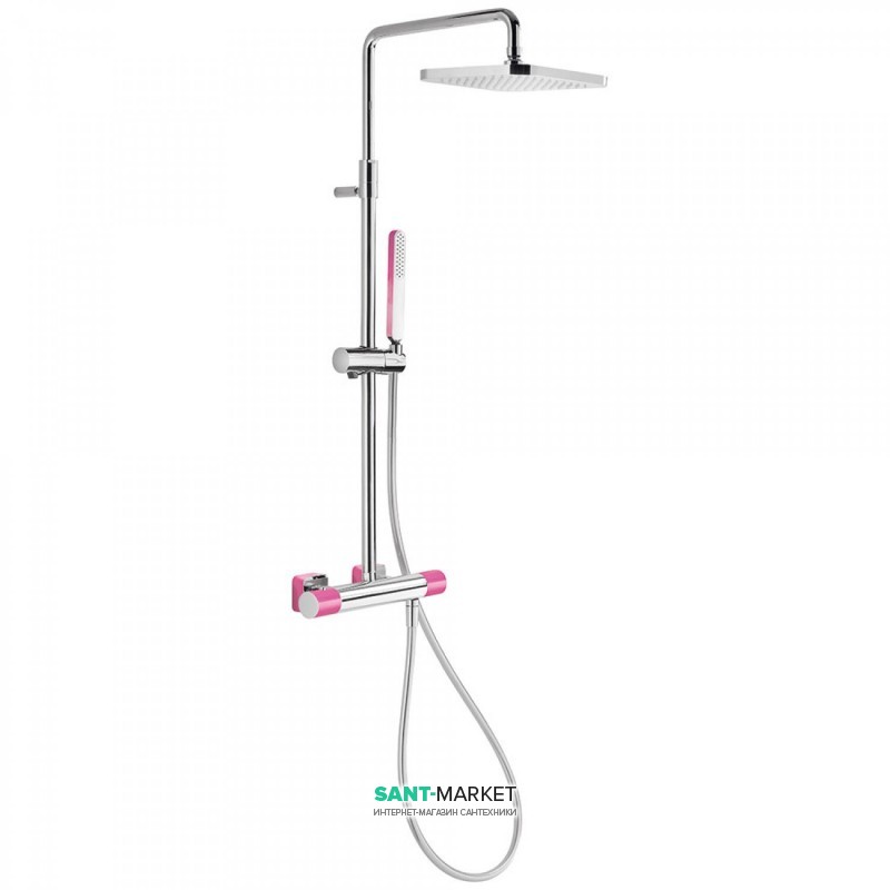 Душевая стойка Tres Loft colors с термостатом фуксия/хром