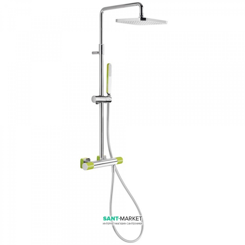 Душевая стойка Tres Loft colors с термостатом зеленый/хром