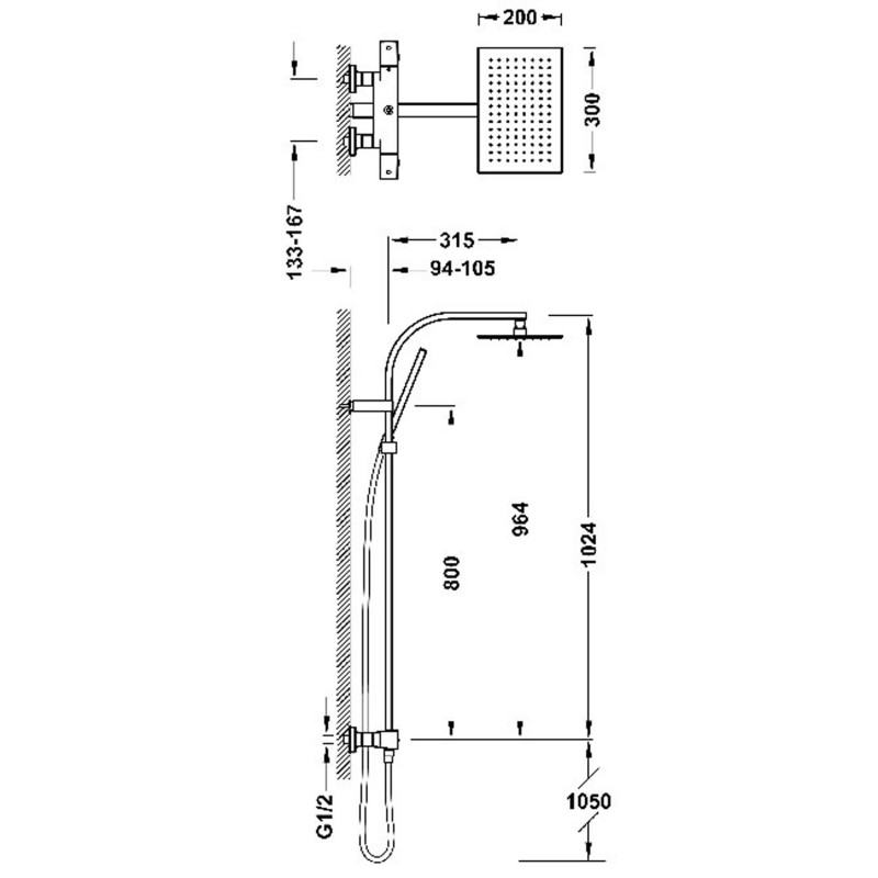Душевая стойка Tres Over-wall с термостатом хром 19039306
