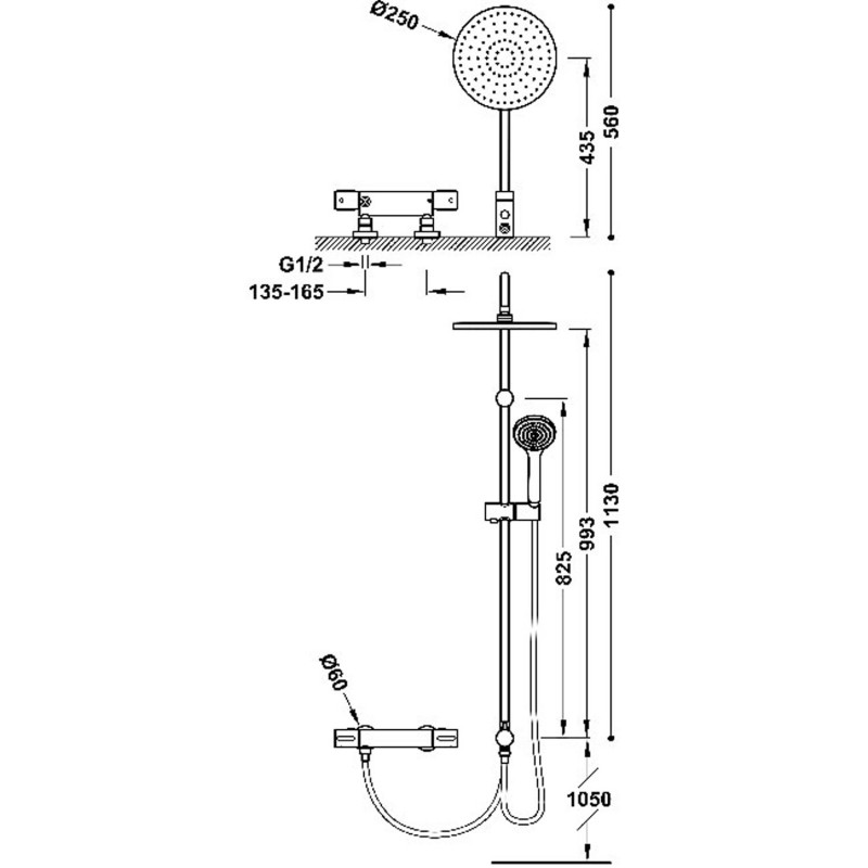 Душевая стойка Tres Over-wall с термостатом хром 19038501