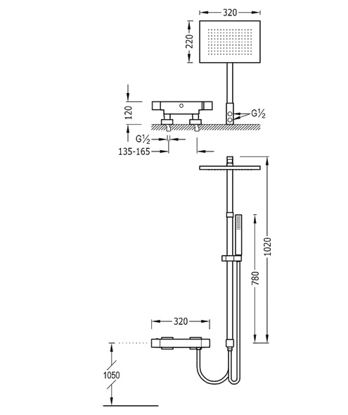 Душевая стойка Tres Slim-Tres термостатическая c верхним и ручным душем хром 20238501