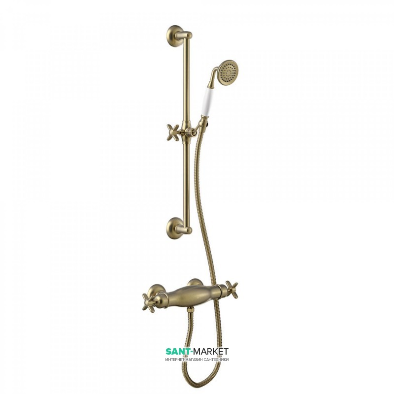 Душевая стойка Tres Tres-Сlasic с термостатом и ручным душем состаренная латунь