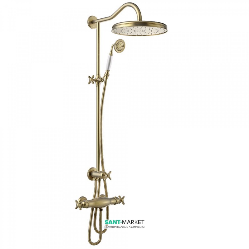 Душевая стойка Tres Tres-Сlasic с термостатом верхним и ручным душем состаренная латунь 24219501LV