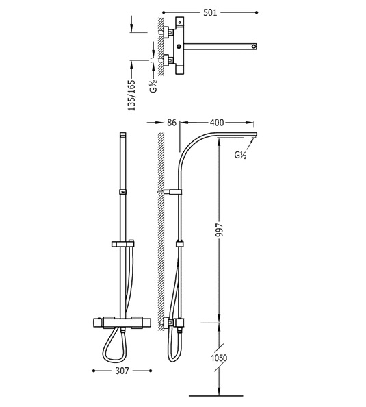 Душевая стойка Tres Tresmostatic термостатическая без душевых аксессуаров хром 00749501