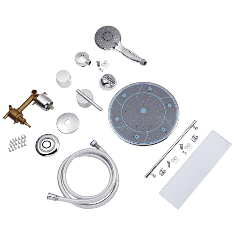 Душевой бокс Kroner KRP Armada - WD.C.T.F. 90x90 см - это идеальное решение для создания комфортного и современного душевого пространства в вашей ванной комнате. Бокс имеет размеры 90x90 см и форму четверти круга, что делает его идеальным вариантом для ванных комнат с ограниченным пространством. Конструкция дверей - раздвижная, материал - стекло. Двери имеют рифленую текстуру, что добавляет качественный стиль и обеспечивает конфиденциальность во время душа. Поддон имеет высоту 415 мм и изготовлен из высококачественного акрила, что делает его прочным и долговечным. Глубина поддона составляет 310 мм, что обеспечивает комфорт при принятии душа. В комплект душевого бокса входит большое количество необходимых элементов, таких как сифон, двери, ручки, ролики, профиль, крышка, задние стенки, душевая панель с гидромассажными форсунками, смеситель, лейка для ручного душа, лейка для верхнего душа, душевой шланг, кронштейн для ручного душа, шланговое подключение, ножки, комплект крепежных деталей и полка. Это обеспечивает полную функциональность и удобство использования. С душевым боксом Kroner KRP Armada - WD.C.T.F. 90x90 см, вы получаете стильное и функциональное пространство для вашего ежедневного приема душа, которое поможет вам расслабиться и обновиться.