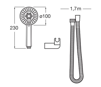 Душевая лейка Roca Stella 100 с тремя функциями - ручной душ круглой формы, диаметром лейки 100 мм и шлангом в комплекте.
