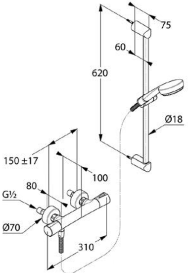 - термостатический смеситель для душа с креплением (расход воды 18 л/мин)