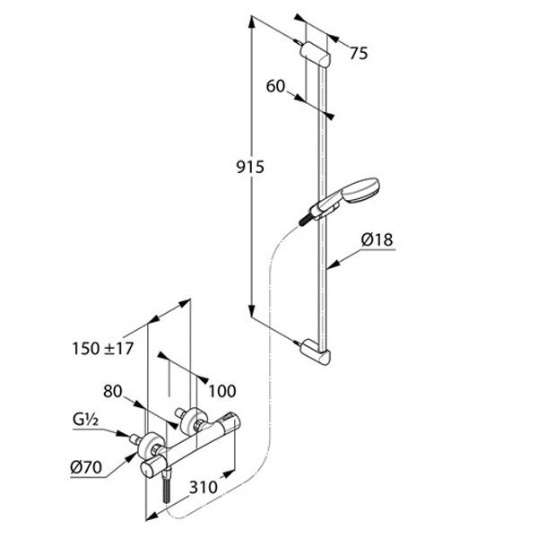 - термостатический смеситель для душа с креплением (расход воды 18 л/мин)