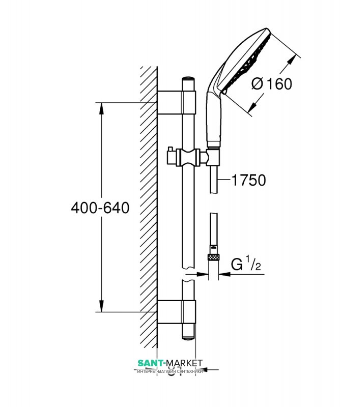 Душевой гарнитур со штангой Grohe Rainshower 160 хром 28768001