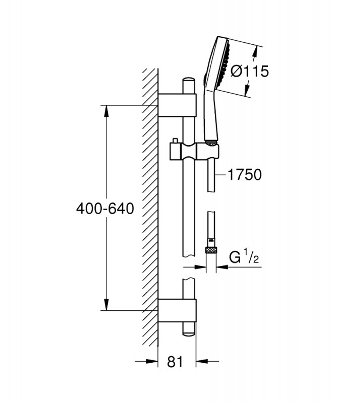Душевой гарнитур со штангой Grohe Power&Soul Cosmopolitan 115 хром 27753000