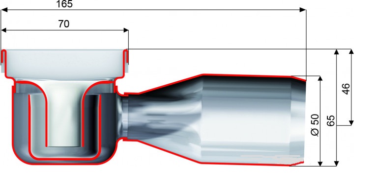 - низкий сифон, монтажная высота 6,5 см (высота воды в сифоне 30 мм)