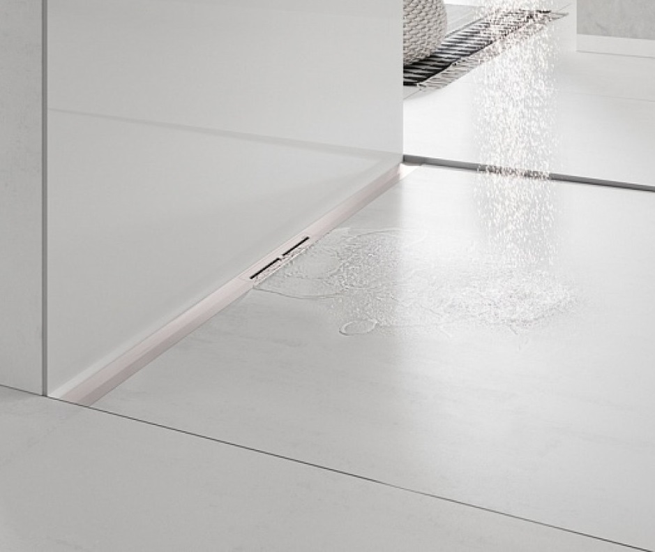 Профиль для душевой TECEdrainprofile предназначенный для дренажа душевой комнаты, устанавливается в плиточном клее поверх стяжки и гидроизоляции. Для напольных покрытий толщиной - 25 мм с возможностью установки вплотную к стене при толщине облицовочного слоя стены от 10 мм или на некотором расстоянии от стены.