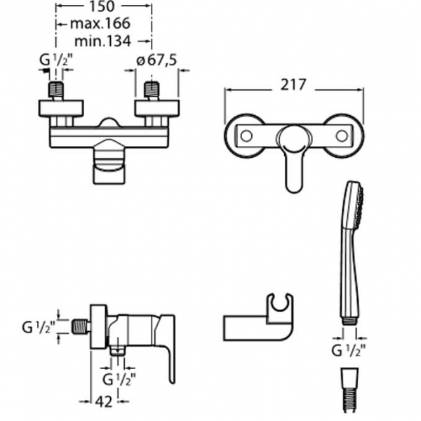 Душевой набор Roca L20 хром (A5A2009C02) классического дизайна, предназначенный для настенного монтажа. Состоит из смесителя, ручной лейки, держателя для душа и душевого шланга с металлическим покрытием.