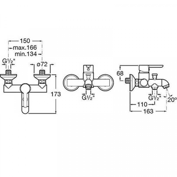 - Вынос излива: 163 мм