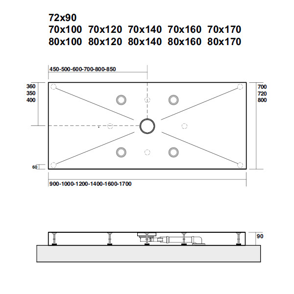 Белые акриловые душевые поддоны, высота 9 см  в комплекте с выпускным сифоном.