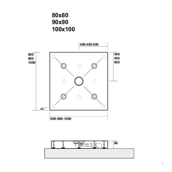 1) Душевой поддон акриловый Kerasan H9 с антискользящим покрытием 80х80 см
