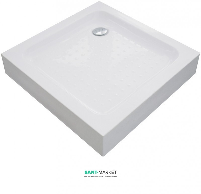Квадратный акриловый поддон с формованной панелью 90*90*15 см, сифон в комплекте. Диаметр сливного отверстия 60мм, сифон 90мм.