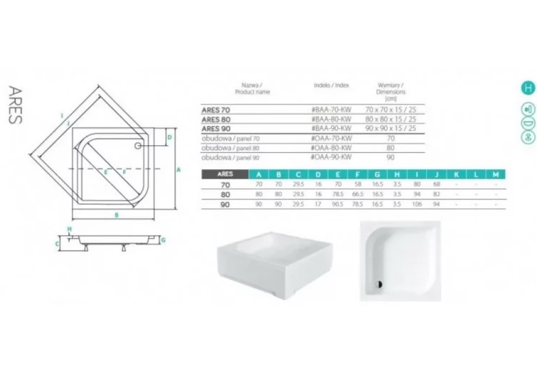 Душевой поддон Besco Ares 70х70 см акрил белый BAA-70-KW