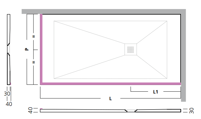 - Благодаря легкости обрезки поддон может быть адаптирован к особым размерам, что позволяет сохранять целыми колонны, низкие стены или углы, существующие в помещении.