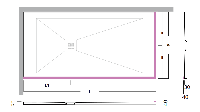 - Благодаря легкости обрезки поддон может быть адаптирован к особым размерам, что позволяет сохранять целыми колонны, низкие стены или углы, существующие в помещении.