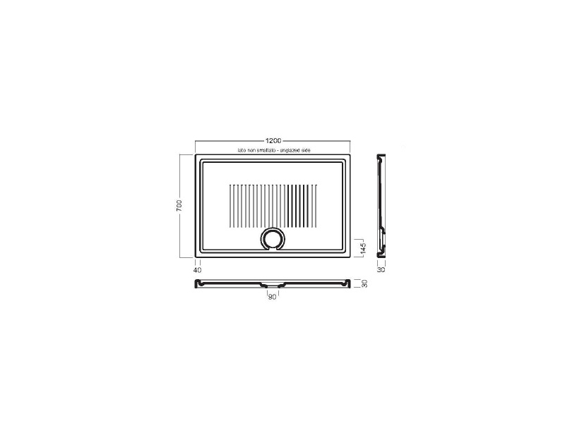 Поддон душевой керамический HATRIA LIF H3, размер 120х70х3 см, цвет белый. Сифон для поддона HATRIA LIF H3 с круглой пластиковой крышкой выпуска, ультра плоский, диаметр 90 мм, цвет белый.
