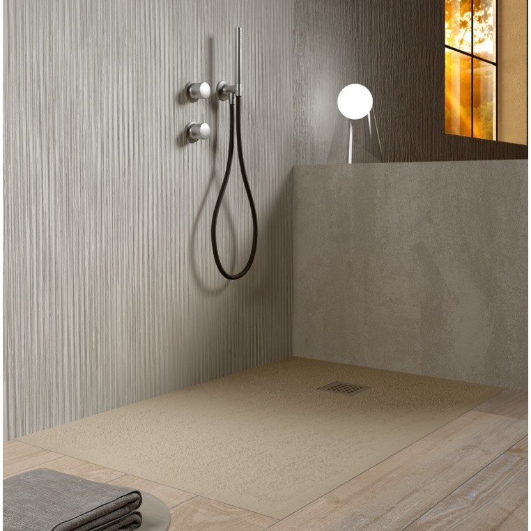 каменная структура, покрытие эмалью с двух сторон, устойчивое к внешним факторам, антибактериальные свойства, в комплекте с сифоном Geberit и стальной решеткой для слива, окрашенной под цвет поддона