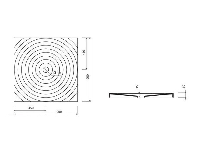 1) Душевой поддон Marmorin Rosa 90х90 см искусственный камень белый
