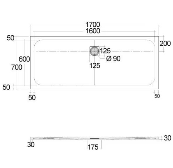 Душевой поддон Kludi Terra 170х70 см композит черный матовый