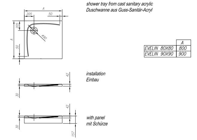 Душевой поддон Evelin Tray Q из литьевого сантехнического акрила, уникальный по своим эстетическим и функциональным свойствам, может быть встроен или установлен с панелью.