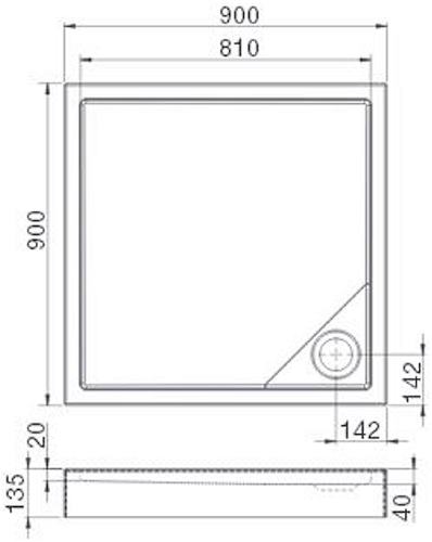 1) Душевой поддон квадратный Roca Malaga Square Compact 90х90 см акрил белый