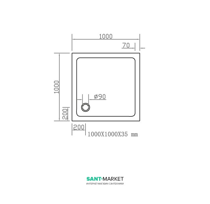 Душевой поддон квадратный Eger 100х100х3.5 белый 599-1010S