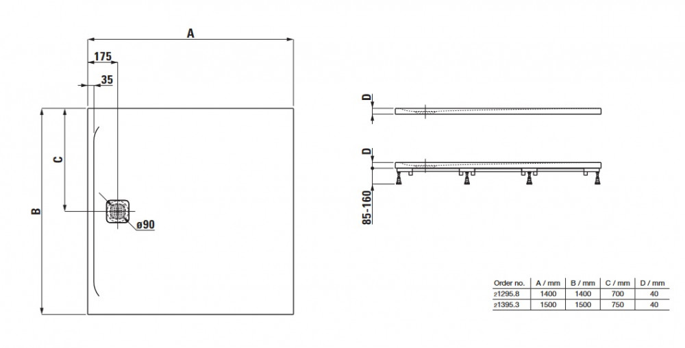 Душевой поддон Laufen Pro 140х140 см композитный материал Marbond светло-серый