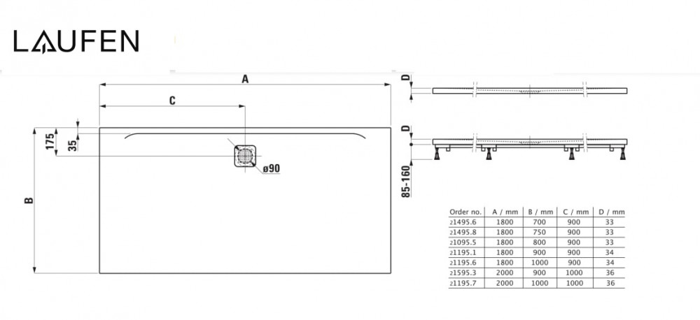 Душевой поддон Laufen Pro 90х200 см композитный материал Marbond антрацит H2159530780001