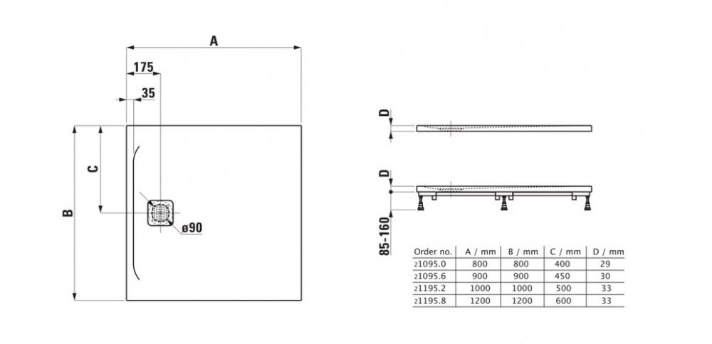 Душевой поддон Laufen Pro 90х90 см композитный материал Marbond светло-серый H2109560770001