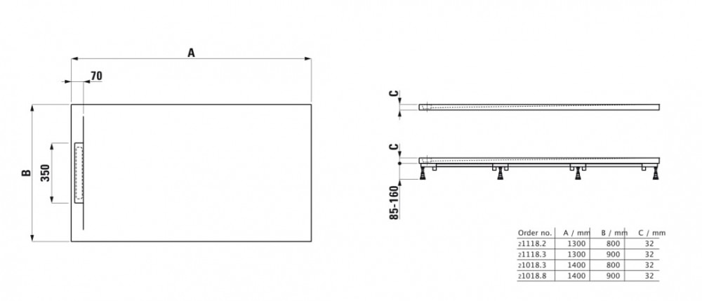 линейный слив на короткой стороне