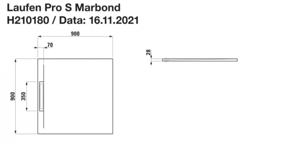 Душевой поддон Laufen Pro S 90х90 см композитный материал Marbond бетон H2101800790001