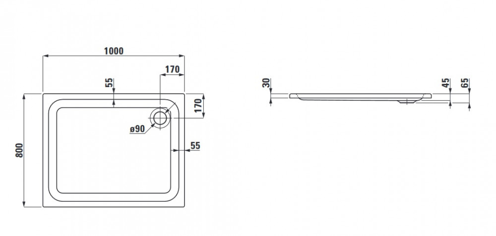 Душевой поддон Laufen Solutions 80х100 см акрил белый H2115080000001