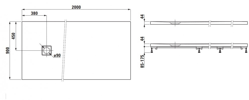 Душевой поддон Laufen Solutions 90х200 см композитный материал Marbond белый H2144440000001
