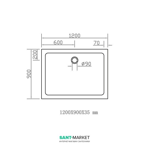 Душевой поддон прямоугольный Eger 90х120х3.5 белый 599-1290S