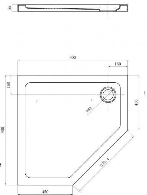 Пятиугольный душевой поддон Comfort FTR0123 от Devit имеет размеры 90 х 90 х 5.5 см, изготовлен из высококачественного акрила, и оснащается отверстием под сифон диаметром 9 см.