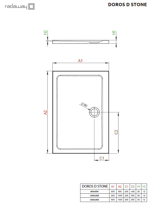 1) Душевой поддон Radaway Doros D Stone White 100х80 под камень акрил белый