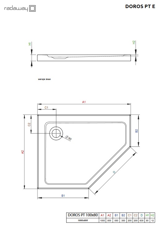 Душевой поддон Doros PT E имеет сливное отверстие диаметром 90 мм, противоскользящую поверхность и обтекаемую пятиугольную форму, которая гармонично впишется в интерьер большинства современных ванных комнат. Данный поддон устанавливается непосредственно на пол путем приклеивания на строительный раствор или монтажную пену с низким коэффицентом расширения. Главным отличием душевых поддонов Radaway является широкий ассортимент, приемлемая цена и высокое качество материалов изготовления.