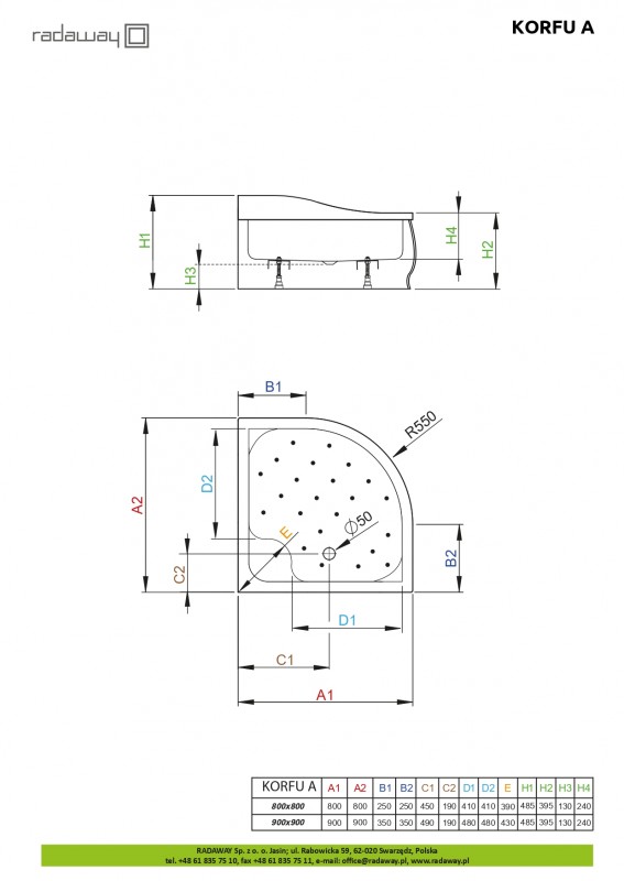 1) Душевой поддон Radaway Korfu A 80x80 см акрил белый