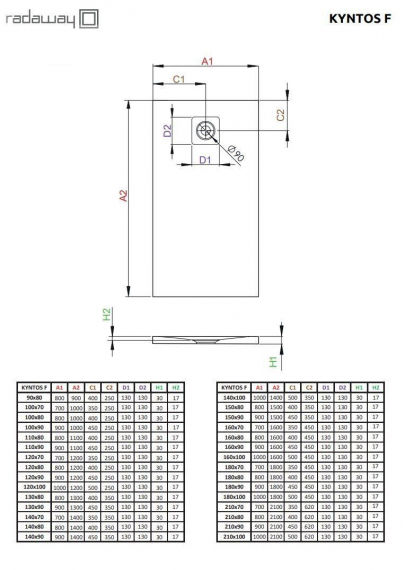 1) Душевой поддон Radaway Kyntos F 90х80 литьевой мрамор антрацит