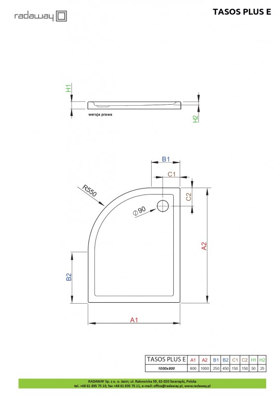 Душевой поддон Radaway Tasos Plus E 100x80 см правый акрил белый