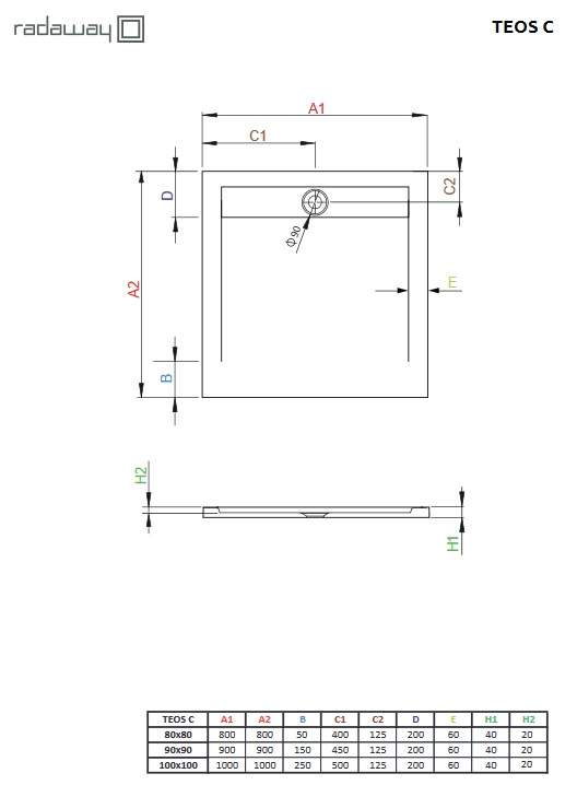 1) Душевой поддон Radaway Teos C 90х90 литьевой мрамор цемент
