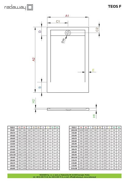 1) Душевой поддон Radaway Teos F 100х80 литьевой мрамор черный