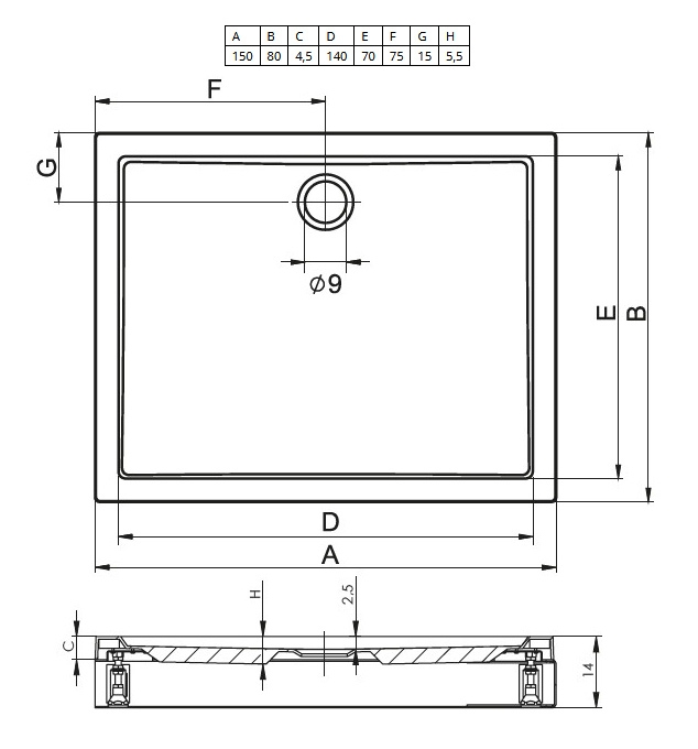 - Диаметр слива: 9 см