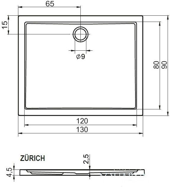 1) Душевой поддон Riho Zurich 262 130х90 см акрил белый