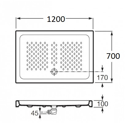 1) Душевой поддон Roca Italia прямоугольный 120х70 см керамика белый